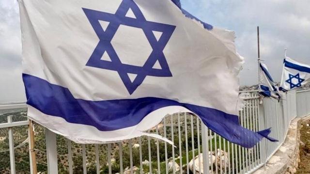 Banderas de Israel en límites de asentamientos.