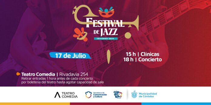 La secretaría de Comunicación y Cultura municipal invita a participar del Festival de Jazz edición invierno que se realizará este miércoles 17 de julio, en el marco del Ciclo Vacaciones en el Comedia, con entrada gratuita hasta agotar capacidad de sala.