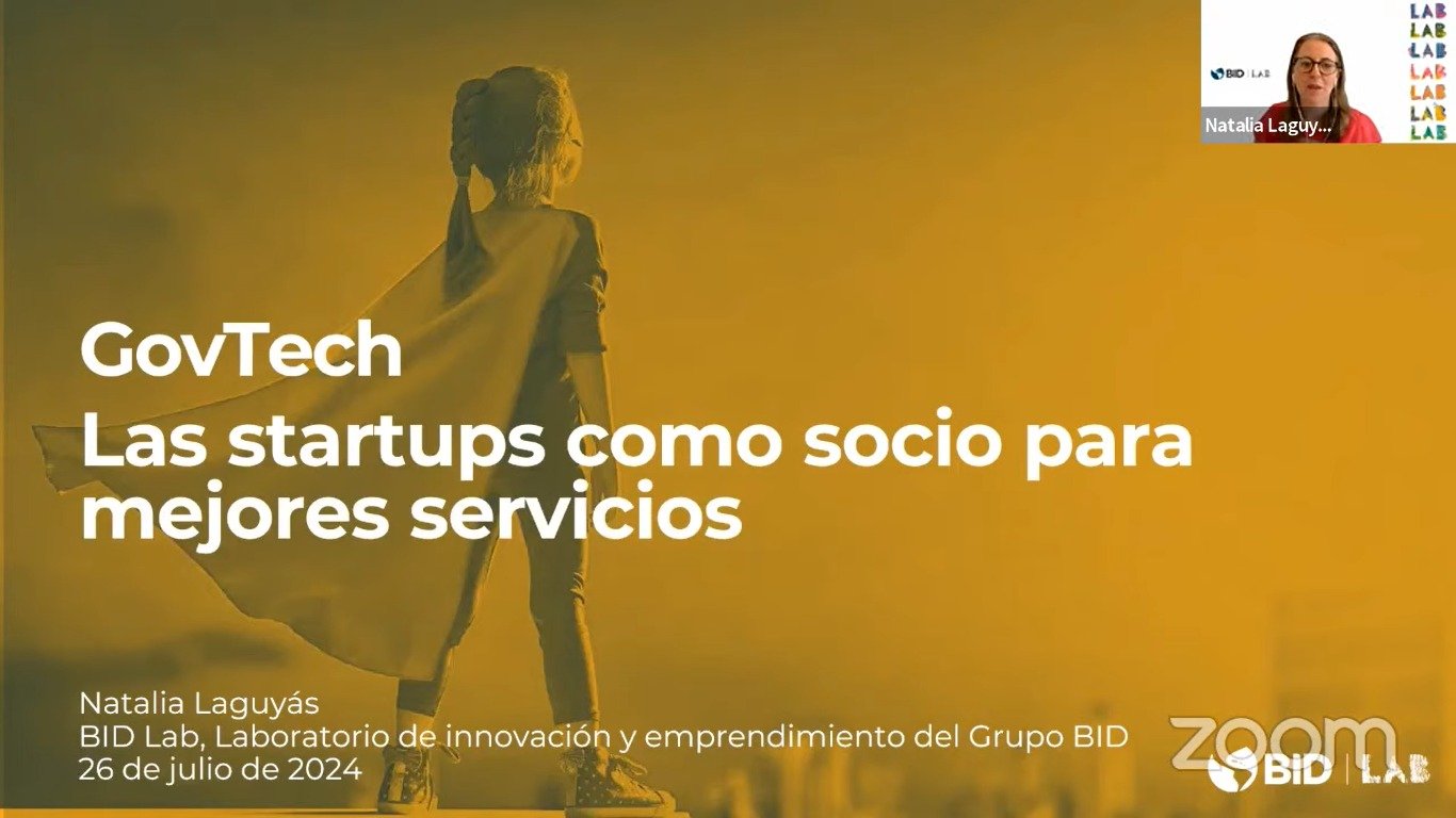 El seminario contó con la disertación de Natalia Laguyás, Especialista Senior de BID Lab y líder de la agenda Govtech del Organismo Internacional, quien presentó los principales desafíos y ventajas para promover la innovación pública en gobiernos locales a través del Govtech, así como el rol de BID Lab en el impulso de esta agenda.