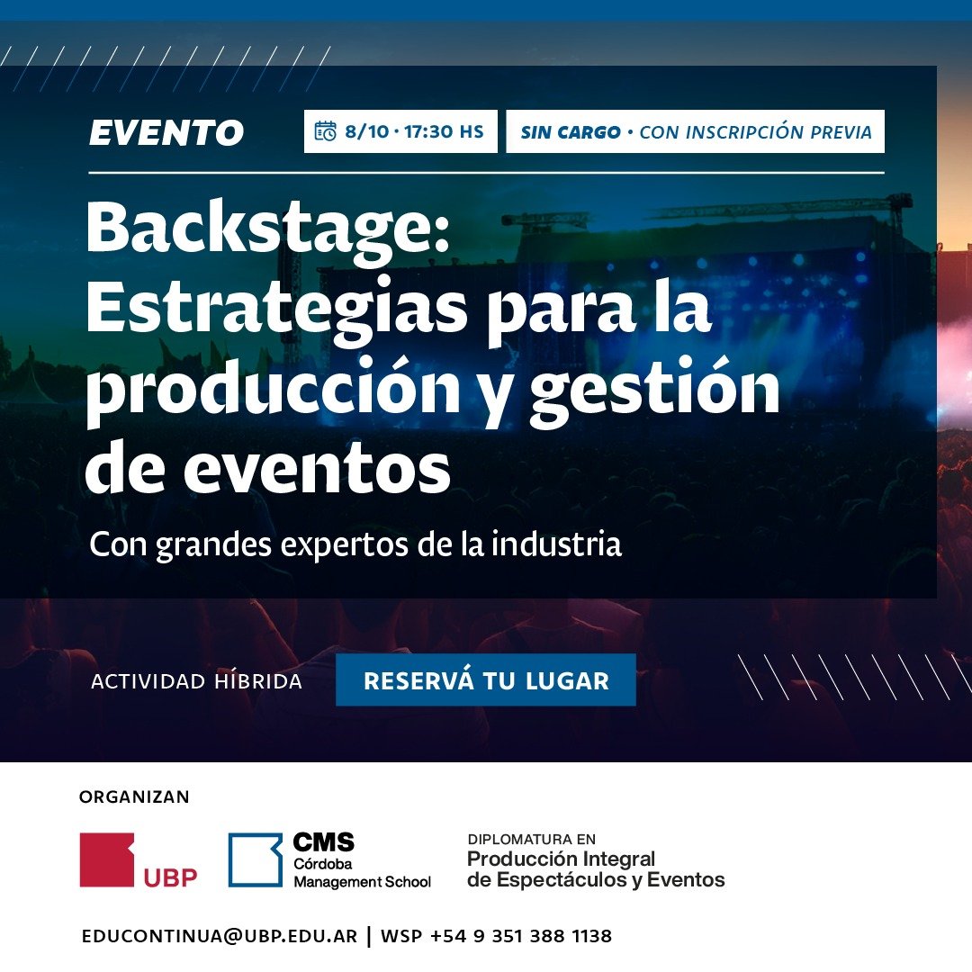 La Universidad Blas Pascal (UBP) invita el martes 8 de octubre a las 17 horas a profesionales, graduados y estudiantes del sector de eventos de todo el país a participar de “Backstage”, el primer encuentro sobre las estrategias para la producción y gestión de los eventos.