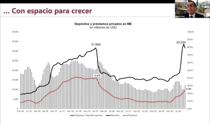 Una curva que también es impactante es la de los depósitos en dólares. Ese stock era de US$31.000 millones antes de las PASO de 2019 en las que se impuso Alberto Fernández. Hubo una fuga fenomenal que las dejó a la mitad. Y ese valor rebotó recién desde mediados de este año cuando llegaron a US$33,000 millones.