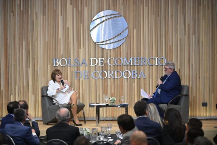 En un almuerzo organizado por la Bolsa de Comercio de Córdoba, la ministra de Seguridad de la Nación, Patricia Bullrich, defendió el rumbo económico del gobierno de Javier Milei y pidió que las provincias y municipios repliquen el ajuste que llevó adelante la Nación.