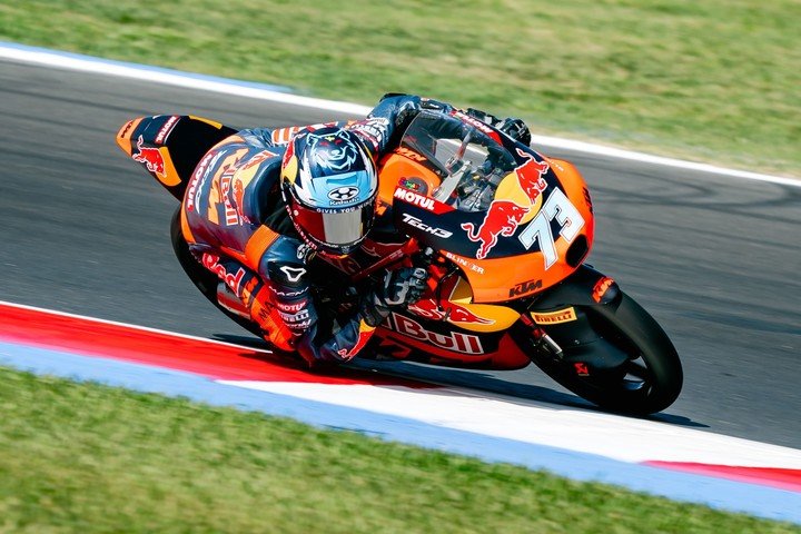 Perrone salió en un buen momento, giró con un grupo grande y pudo sacarle provecho a la potencia de su KTM, preparada por el Tech3: firmó un 1m40s328 que superó por 0s025 al tiempo del australiano Joel Kelso. Fue un día feliz para la estructura francesa, ya que Jacob Roulstone, compañero de Valentín, quedó 3° y completo la primera fila.
