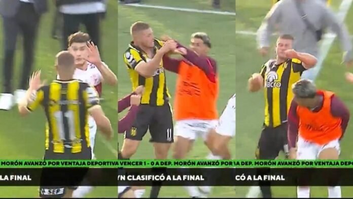 El bochornoso final de la semifinal del Reducido por el segundo ascenso en la Primera Nacional, entre Deportivo Madryn y Deportivo Morón, quedará en la historia. Y no es para menos. Empujones, corridas, piñas, tumultos en todo el campo de juego y hasta represión de la Infanteria contra los jugadores del Gallo, que explotaron contra el árbitro Pablo Echavarría, fue el escenario tras el pitazo final en el Abel Sastre.