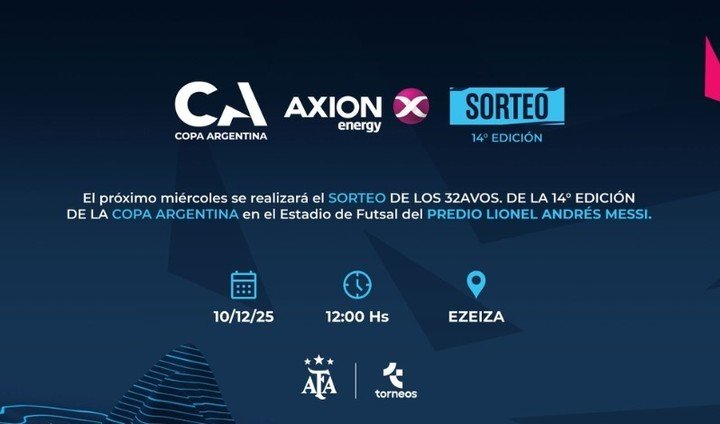 A un mes de la consagración de Independiente Rivadavia, la Copa Argentina vuelve al centro de la escena: el miércoles 10 de diciembre, a las 12hs, en el Predio Lionel Messi de Ezeiza, se realizará el sorteo de la Copa 2026. Allí quedarán definidas las llaves para los 64 equipos, con un foco fuerte en los representantes del Ascenso ya que la jugarán 34 clubes de categorías menores.