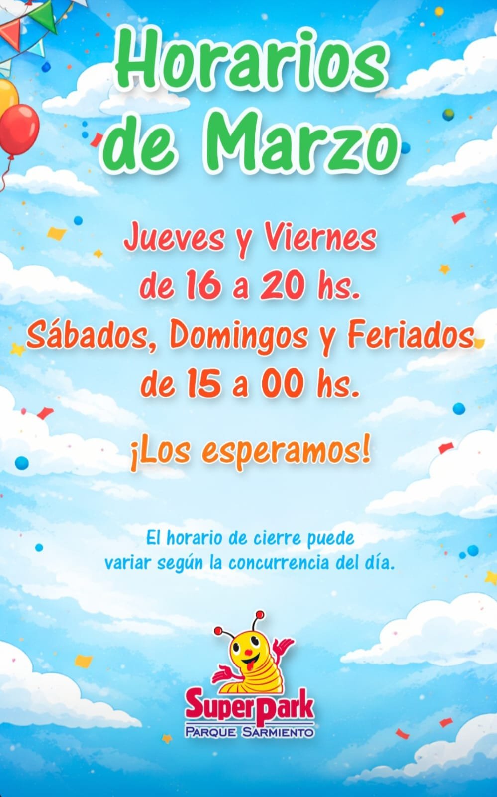Horarios de marzo – Super Park