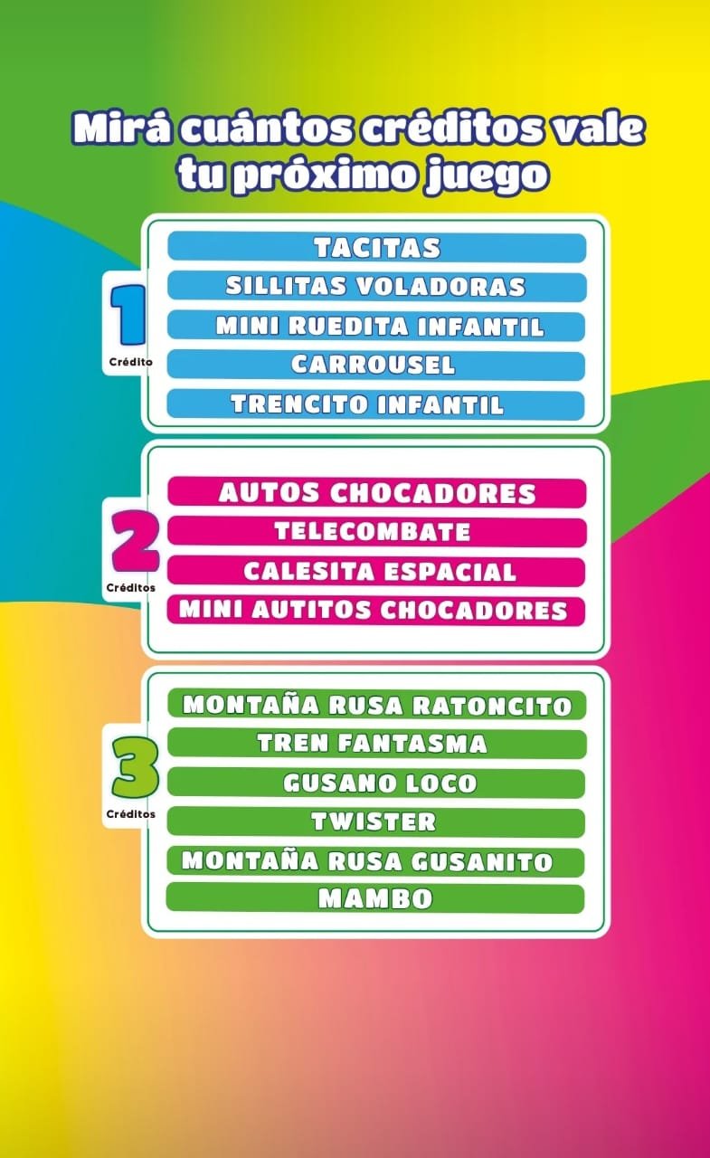 Una de las incorporaciones más destacadas es el sistema de créditos, que permite organizar mejor la experiencia dentro del parque. Este formato brinda libertad para elegir cuándo y cuántos juegos disfrutar, con la ventaja de que los créditos no tienen vencimiento.