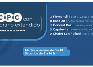 CPC con horario extendido: Mercantil, Ruta 20, General Paz, Capdevila y Chalet San Felipe