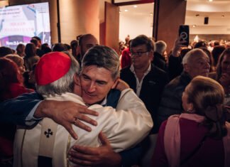 Passerini participó de la primera misa en el nuevo templo de la parroquia Nuestra...