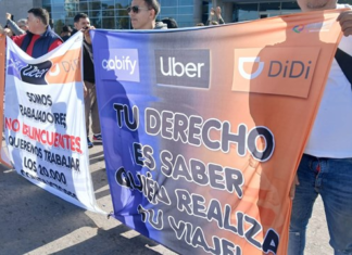 Trabajadores de Uber, Cabify y DiDi se concentraron esta mañana para exigir que se los incluya en el debate sobre la regulación de...